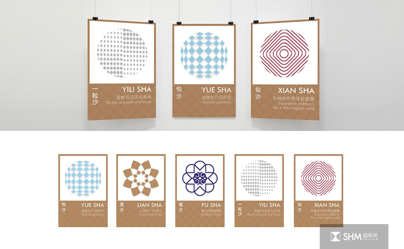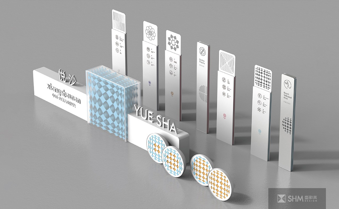 以纯白的色彩体系结合各个区域的专属图形表达在沙漠中“保留心中的一方净土”的设计理念。我们为五个度假村设计了专属图形,不拘泥于元素的具体形态,而期望通过抽象视觉的形式使得人们对内心的宁静产生共鸣,让导视系统作为响沙湾精神面貌与文化内涵的代表,展现出全新的视觉感受。