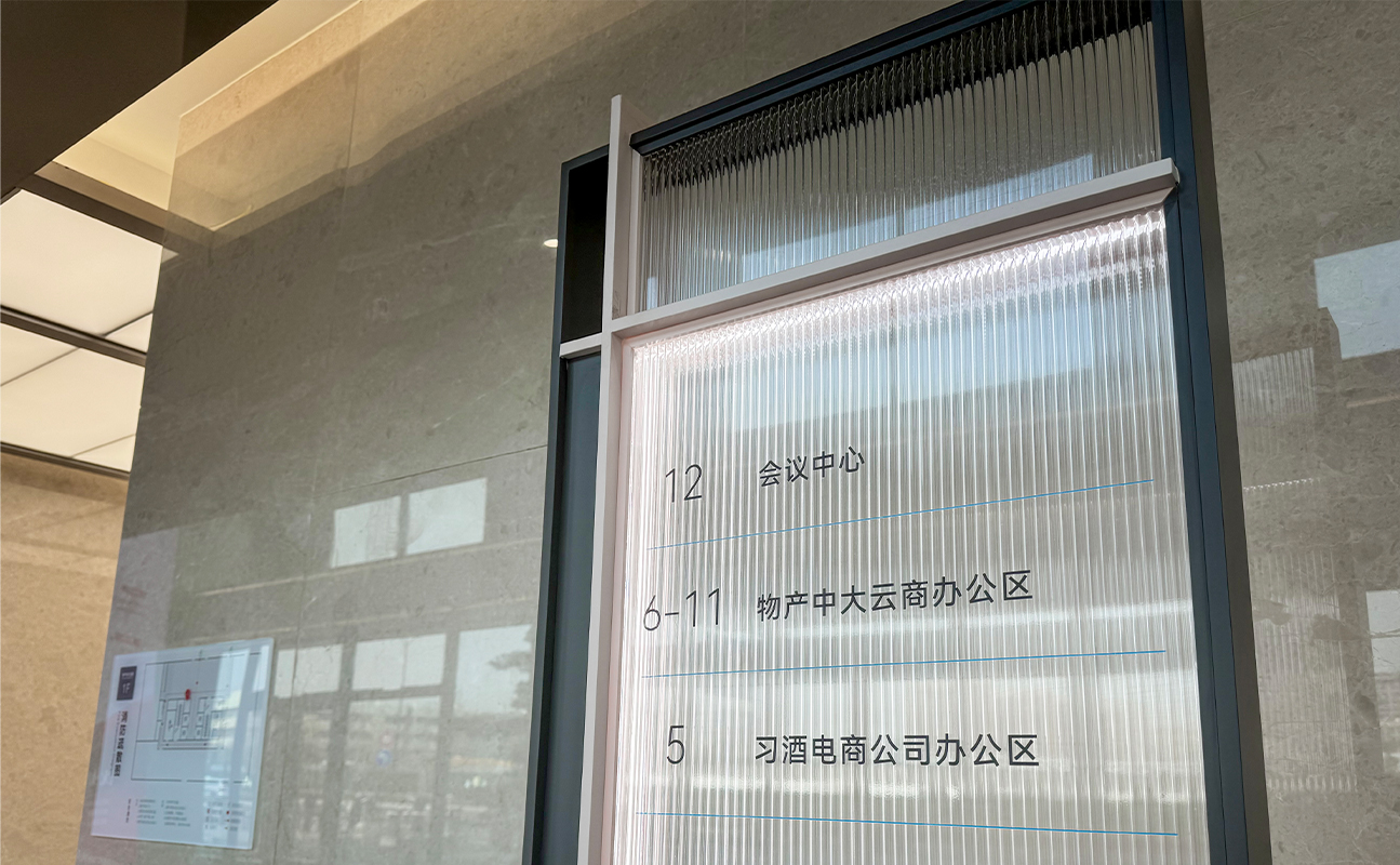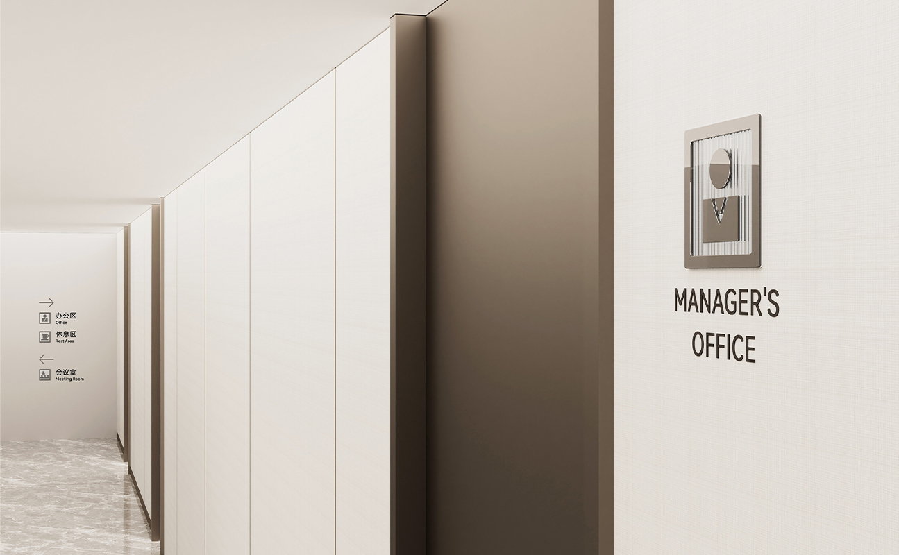 The entire signage system adopts a minimalist style, adhering to the concept of "great principles are simple", embodying the visual beauty of moderation and harmony. It abandons complexity and triviality, pursuing tranquility and elegance, which reflects the yearning for a simple life. In addition, the design incorporates vertical stripes with a "light Song Dynasty charm", which not only highlights the enterprise's sense of stability in the modern and simple style but also conveys tribute to Oriental aesthetics. To achieve the harmonious coexistence of icons and signboards, we have carried out exclusive icon graphic design for this purpose. These icons are both square and rounded, stable yet delicate, conveying the office aesthetics and visual experience of the new era.