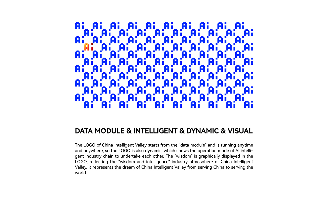 The LOGO of China Intelligent Valley originates from the creative concept of "data modules". Countless "data modules" form the entire industrial chain of AI intelligence, which consists of the foundation layer, technology layer, and application layer. As the computing and data that serve as the infrastructure of the modern information society are characterized by operation anytime and anywhere, the LOGO is also dynamic. This dynamic design demonstrates the interconnected operation mode of the AI intelligent industrial chain.