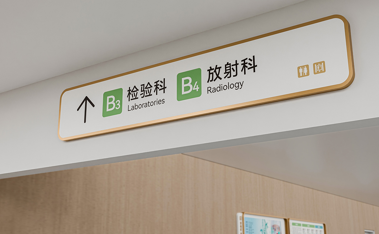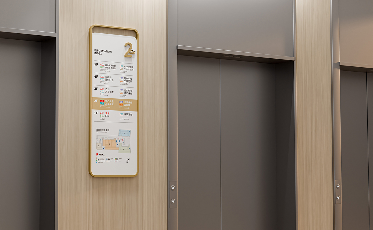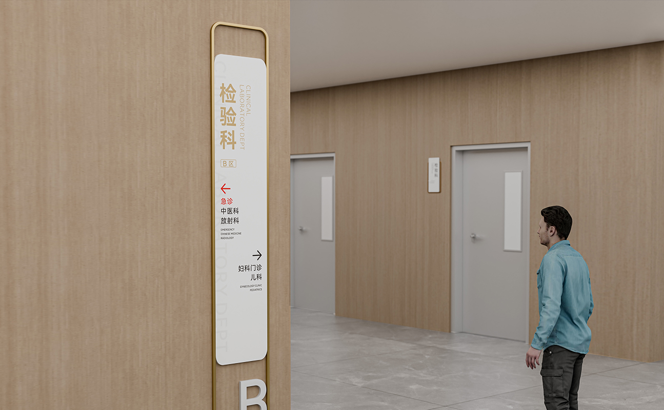 The hospital’s wayfinding system incorporates the cultural heritage of jasmine in Jinhua. With a history of over 300 years in the local area, jasmine emits a delicate fragrance that nourishes people’s hearts and symbolizes a culture of amity and harmony. Guided by the design concept of "Elegant Jasmine Charm · Light and Fluid", the system balances the harmony of the medical space with efficient navigation. Adopting a color scheme of warm gold and angel white, the wayfinding system presents an elegant and clean visual experience. Its rounded and safe shapes, combined with hollow-out designs, integrate the signs seamlessly into the environment, embodying an international style of simplicity and practicality. More than just providing elegant wayfinding guidance, this system creates a soothing and healing spatial experience, echoing the hospital’s people-oriented service tenet.