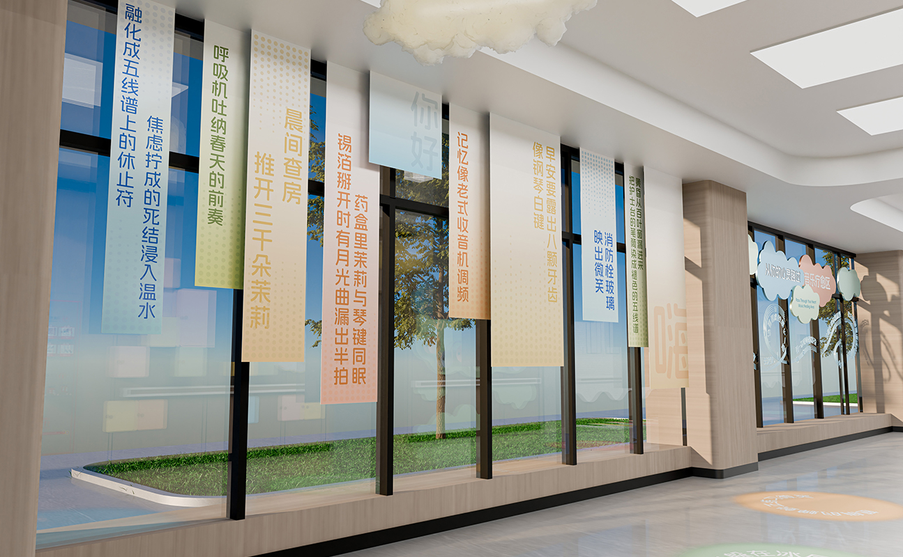 The main outpatient corridor has been elaborately transformed into the "No.158 Art and Cultural Street". Through interactive installations such as emotion drawers, wish walls, and art display walls, it provides emotional sustenance and spiritual healing for patients, conveying the hospital's care and warmth.
